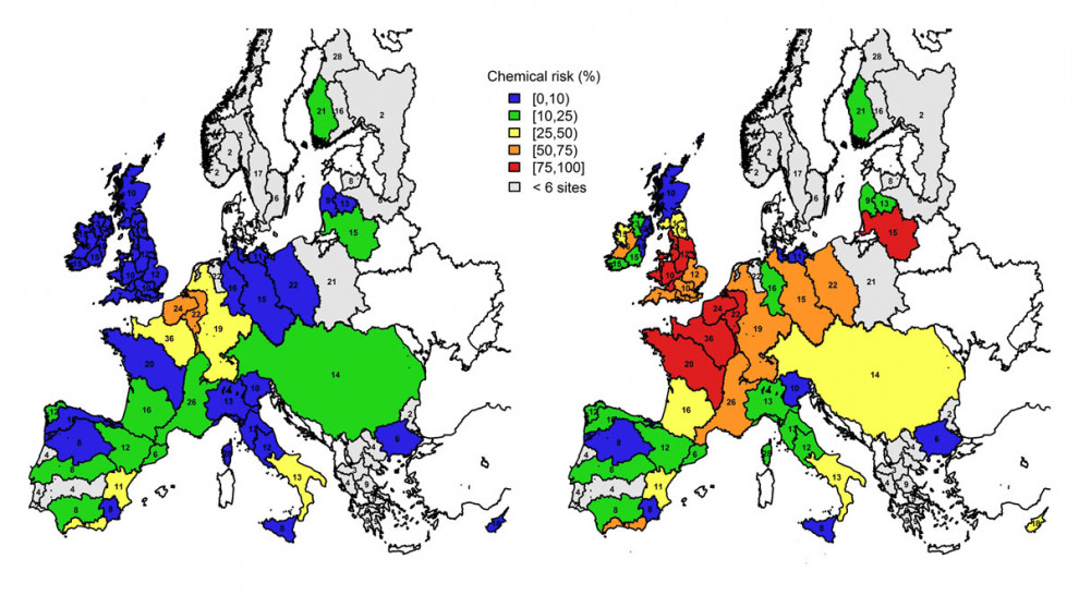 Para realizar el estudio los científicos examinaron datos sobre calidad del agua de más de 4.000 puntos de monitorización de los 28 países de la UE y cuantificaron el riesgo que plantean para los peces, los invertebrados y las algas en cada una de las zonas.