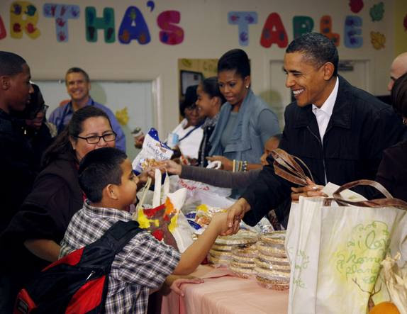 ESPÍRITU NAVIDEÑO. Obama reparte comida a los más desfavorecidos en Washington, con motivo de los actos organizados para celebrar el Día de Acción de Gracias, que da el pistoletazo de salida a la Navidad.