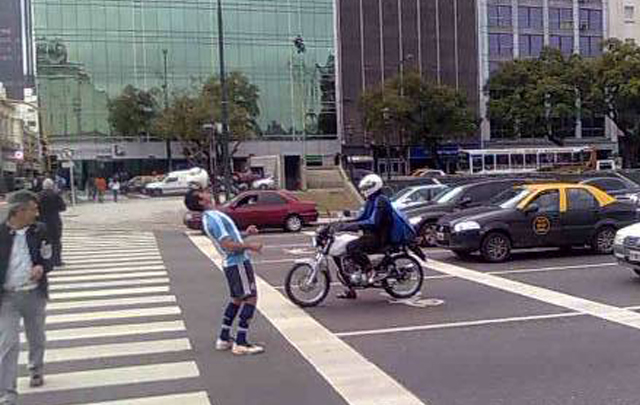 'El crack del semáforo', tal como se lo denomina, dijo que lleva 10 años "haciendo este arte" y que quiere ir a Córdoba porque le contaron que el club Talleres tiene la bandera "más grande".